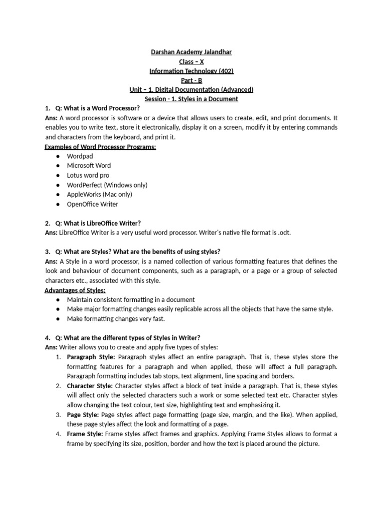 Ans: A Style in a word processor, is a named collection of various formatting features that defines the