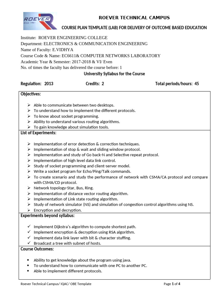Roever Technical Campus/ IQAC/ OBE Template Page 1 of 4