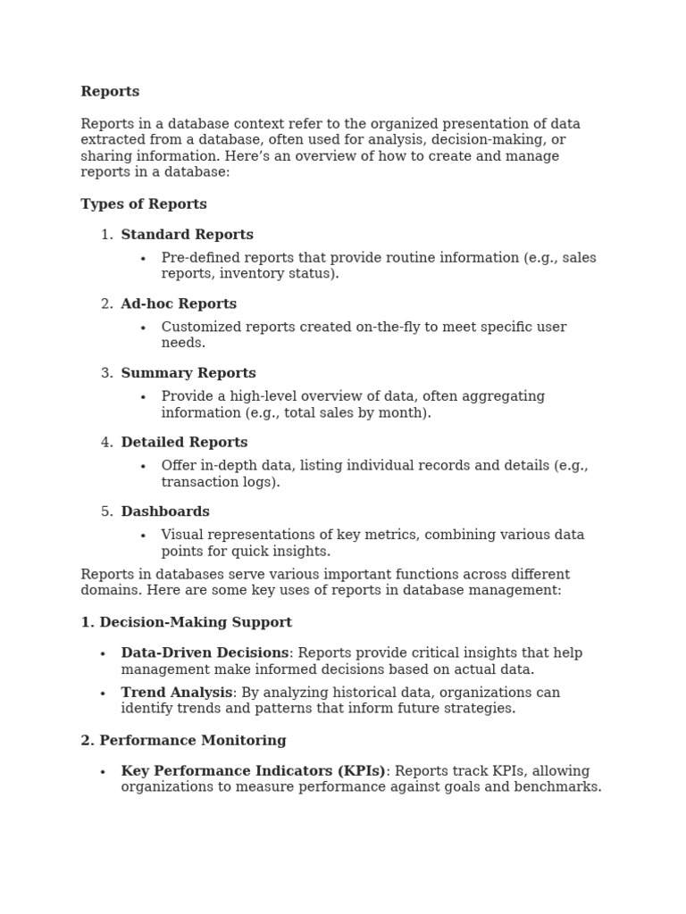 domains. Here are some key uses of reports in database management: