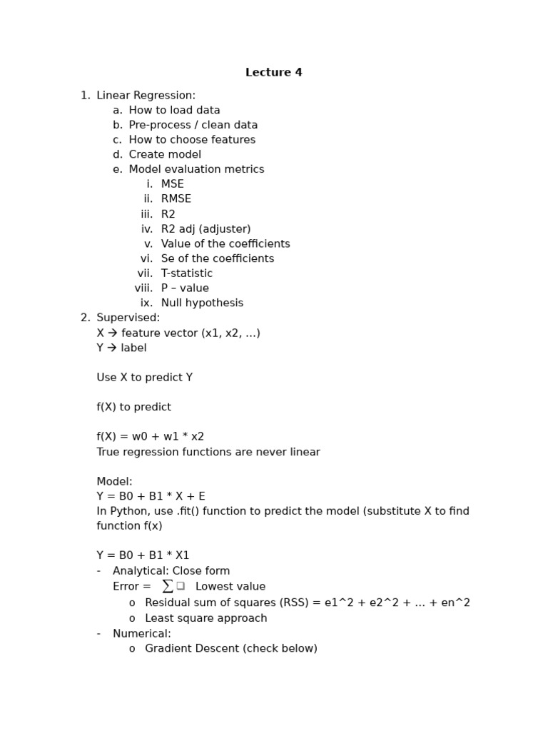 o Residual sum of squares (RSS) = e1^2 + e2^2 + … + en^2