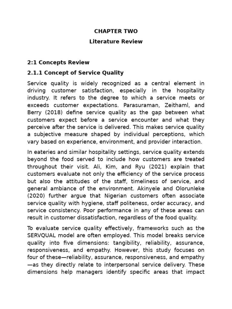 In eateries and similar hospitality settings, service quality extends