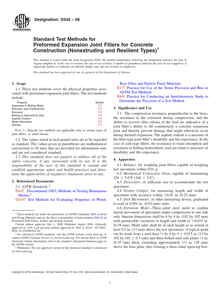 ciated with preformed expansion joint fillers. The test methods ASTM Test Methods