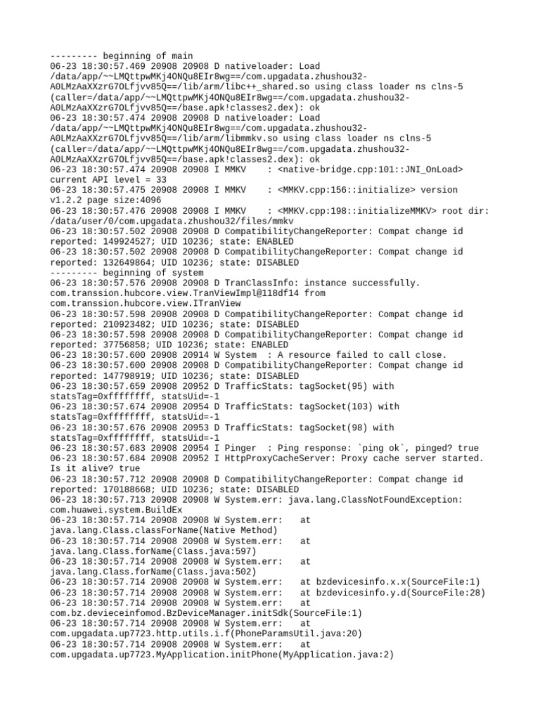 06-23 18:30:57.919 20908 20908 I crashsdk: begin hack android.os.Process