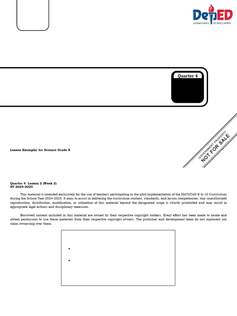 This material is intended exclusively for the use of teachers participating in the pilot implementation of the MATATAG K to 10 Curriculum