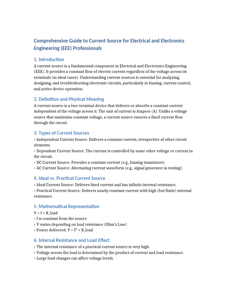 Comprehensive Guide to Current Source for Electrical and Electronics