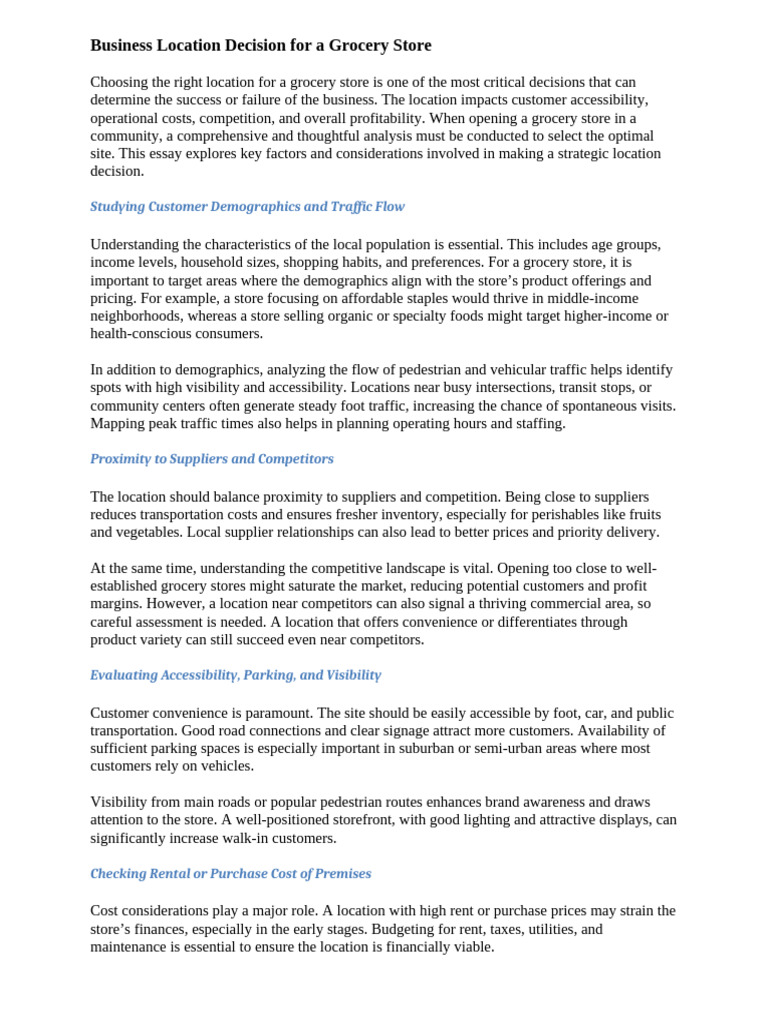 In conclusion, selecting the best location for a grocery store requires a balanced approach that