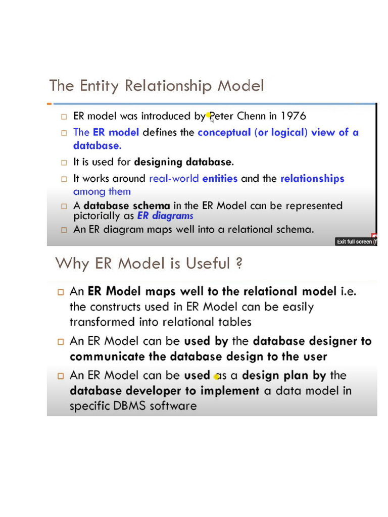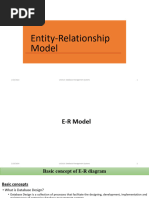 The document outlines concepts related to entity sets and relationship sets. It includes references to descriptive attributes and the degree of relationships. However, the content appears to be incomplete or fragmented.
