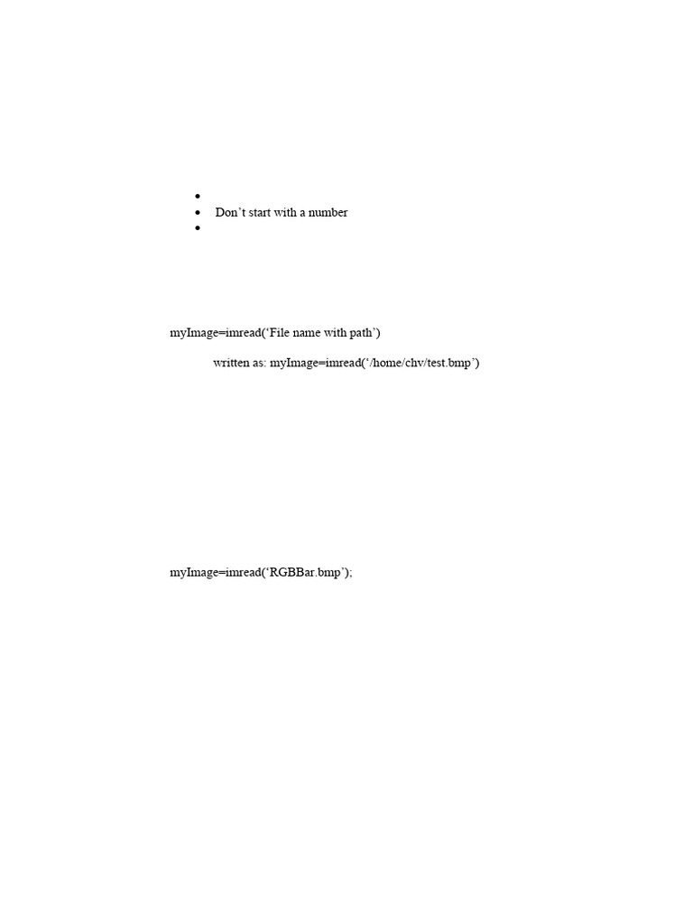 can bemwritten as: myImage=imread(‘/home/chv/test.bmp’)