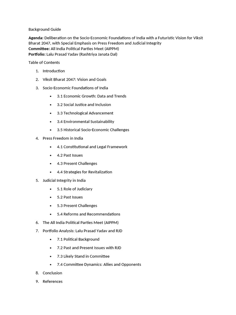 Agenda: Deliberation on the Socio-Economic Foundations of India with a Futuristic Vision for Viksit