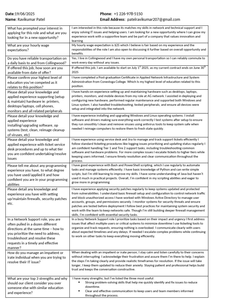What has prompted your interest in I am interested in this role because its matches my skills in network and technical support and I
