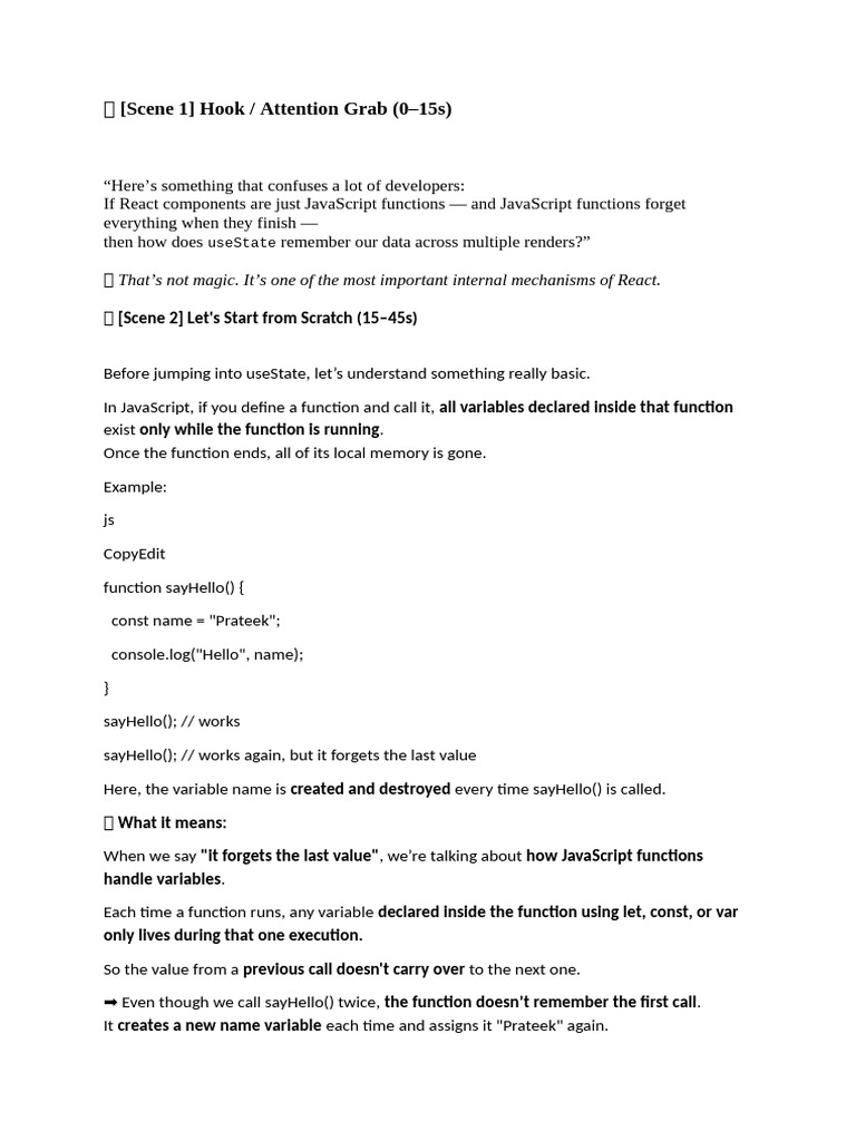 💻 [Scene 3] Code Example - The Mystery of useState (60–80s)