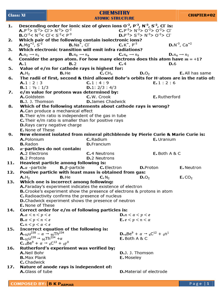 Class: XI CHEMSITRY CHAPTER#02
