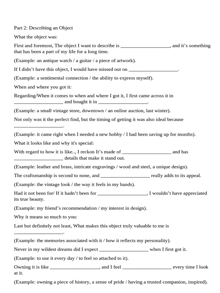 First and foremost, The object I want to describe is ___________________, and it’s something