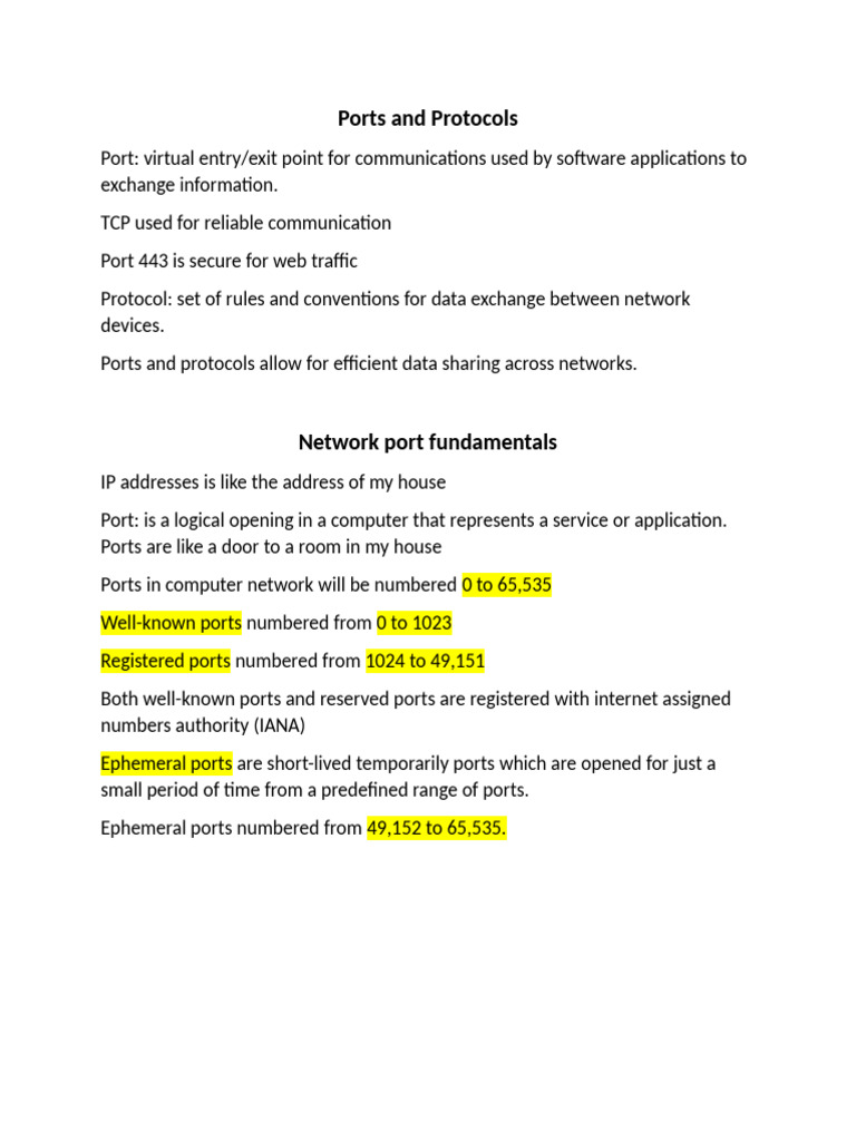 Ports and Protocols