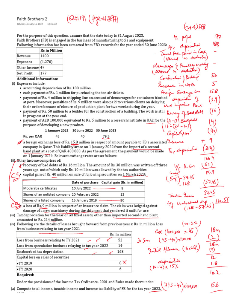 (a) Compute total income, taxable income and income tax liability of FB for the tax year 2023.