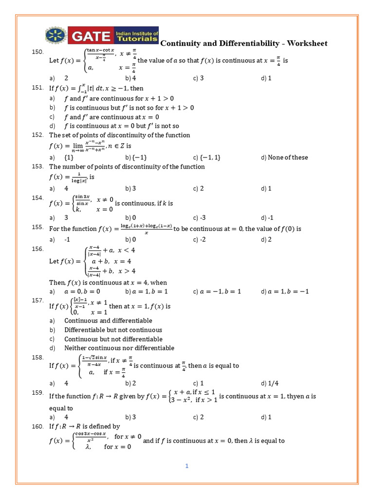 162. If 𝑦 = 𝑓(𝑥) = 1 where 𝑢 = 1 , then the function is discontinuous at 𝑥 =