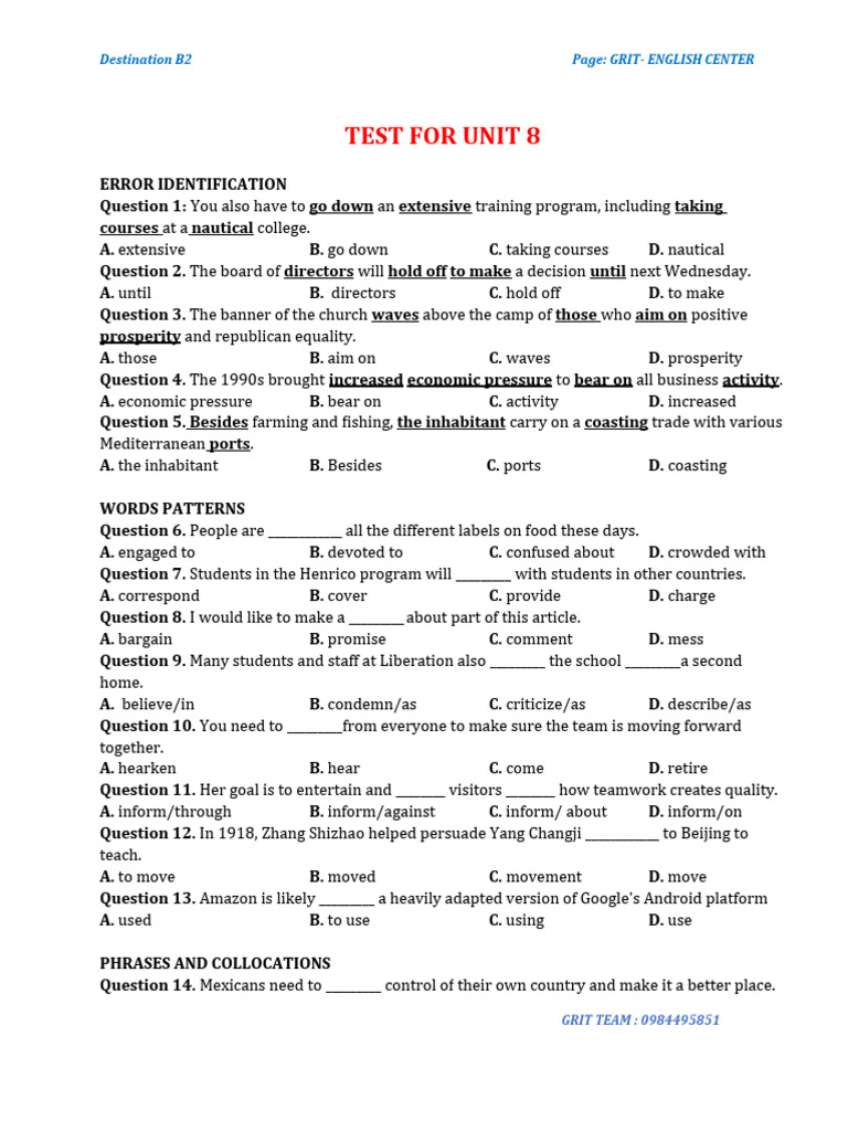 Destination B2 Page: GRIT- ENGLISH CENTER