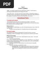 If a person is not able to understand and carry out the duty of care, s/he then is not liable for damages (but vicarious liability possible for another person ie guardian) This case was referred to in the decision of Buckley and TTC v. Smith TPT Ltd above Established that the Reasonable Person Test NOT be applied to children but established that children be subjected to own test vis a vis children of same age and experiences; unless adult activity Held that mistakes dont necessarily mean drs are liable but if negligent, (according to drs of same expert), can be held liable; in this case, liable for not doing proper tissue check Courts must consider, in determining whether a dr was negligent, the custom and practices of the field along with available knowledge of that time; found not liable Necessary but not sole cause cause or materially contribute to the risk; more than half of total global risk factors; outside the de minimis range; generally P to prove on the b. of p. The plaintiff failed to pass the But-For test; not proven that the handrail was faulty; or that she wouldnt have fallen if a different handrail; therefore, handrail didnt CAUSE fall; thus TTC not liable Established a more flexible analysis of the But-For test (MCR); the legal or ultimate burden remains with the plaintiff but in the absence of evidence to the contrary adduced by the defendant, an interference of causation may be drawn, although positive or scientific proof of causation has not been adduced; C.R.C.S. materially contributed to the occurrence of the injury; had proper screening been in place the donor more likely than not would not have donated the tainted blood The tortious drivers (separate) still liable for all damages even though the plaintiff had history of back pain (thin skull principle); presence of other non-tortious contributing causes (stretching) doesnt reduce the liability; all fully liable for consequences as one injury since they were a cause or contributing cause Although sheep was killed by two dogs, one was held liable because the owner of another dog was a no show; liable for ALL damages caused by two dogs; otherwise both liable Although poor design of ventilation contributed to the leak, contractor held joint and severably liable for the whole liability Establishes that in this type of case, burden of proof be shifted to the defendants because they would be in a better position to explain what happened and disprove Because the boy would fall to a certain death, the fact that he was electrocuted (earlier death) made no difference;