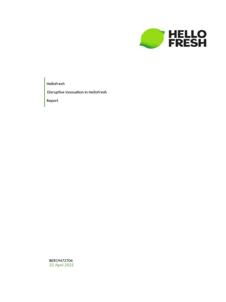 Disruptive Innovation In HelloFresh’s Future Products......................................................15