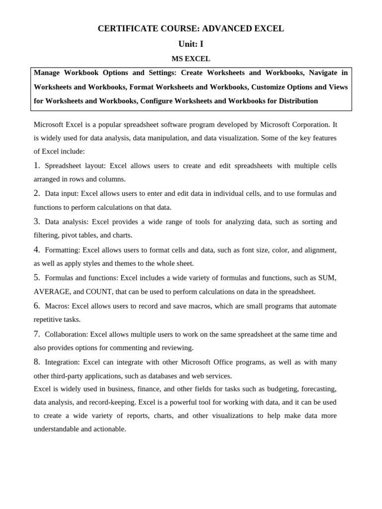 Manage Workbook Options and Settings: Create Worksheets and Workbooks, Navigate in