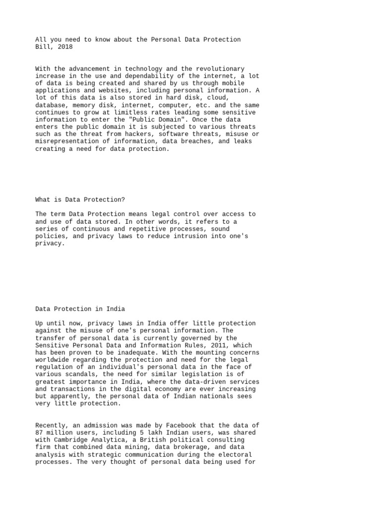 Bill 2018 has been introduced by the Justice B.N. Srikrishna