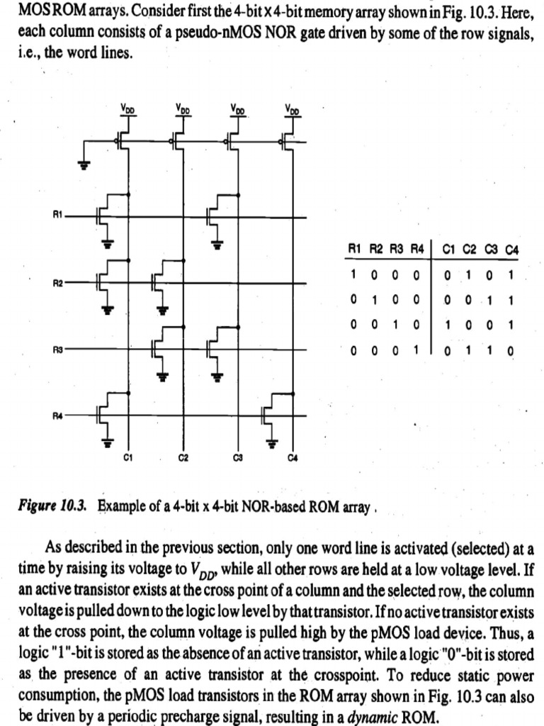 MOSROMarrays. Consider first the 4-bit X4-bit memory array shown in Fig. 10.3.