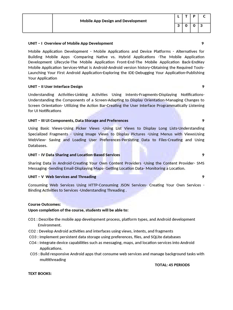 CO4 : Integrate device capabilities such as messaging, maps, and location services into Android