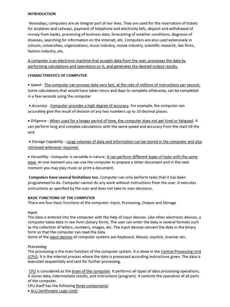A computer is an electronic machine that accepts data from the user, processes the data by