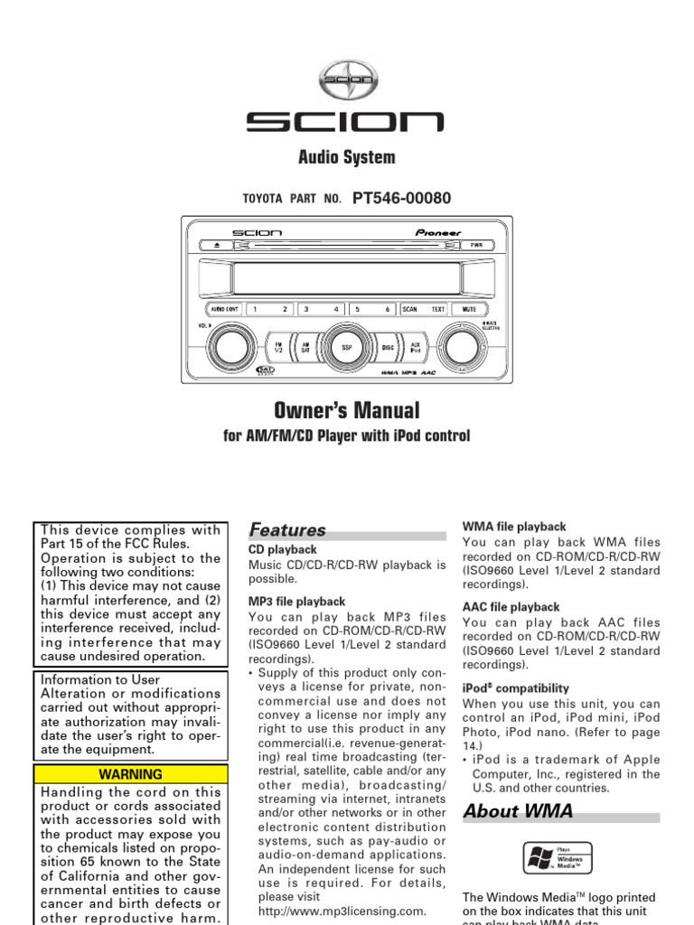 Audio and refers to an audio com- ly prohibited. you must or must not do in
