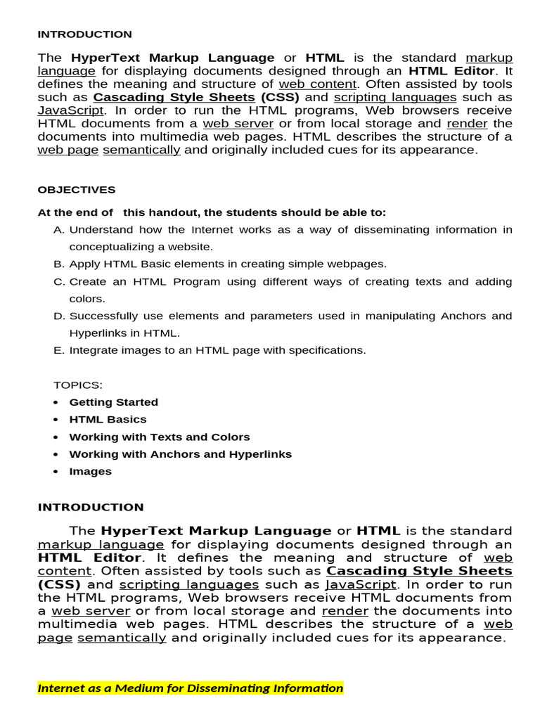 language for displaying documents designed through an HTML Editor. It