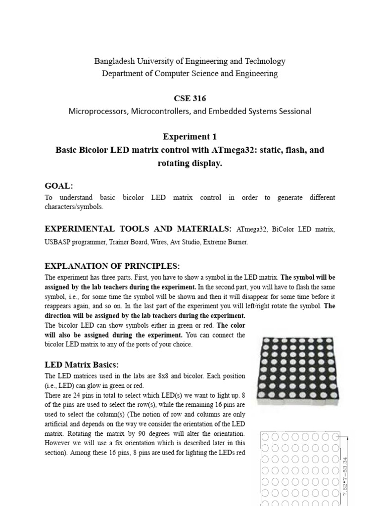 EXPERIMENTAL TOOLS AND MATERIALS: ATmega32, BiColor LED matrix,