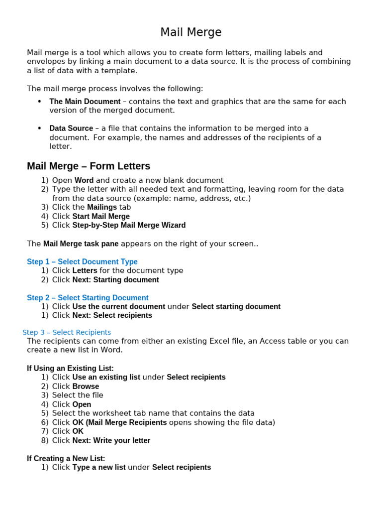Mail merge is a tool which allows you to create form letters, mailing labels and