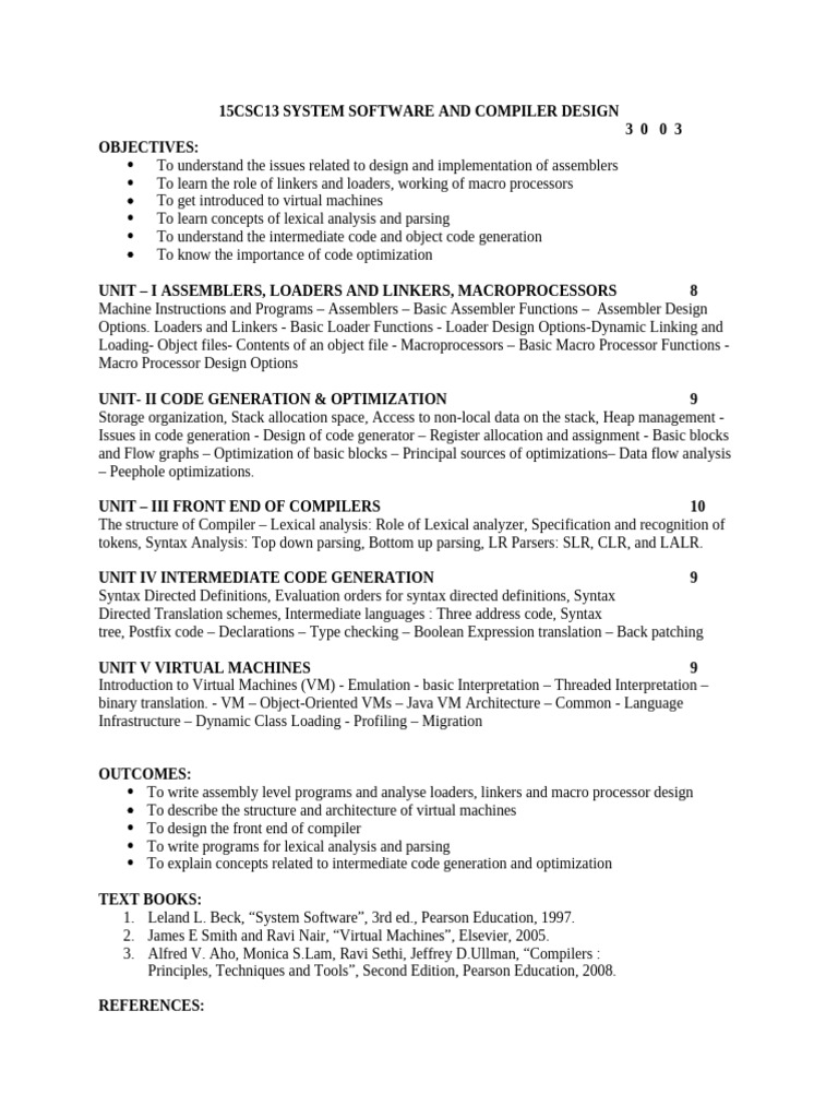 15CSC13 SYSTEM SOFTWARE AND COMPILER DESIGN