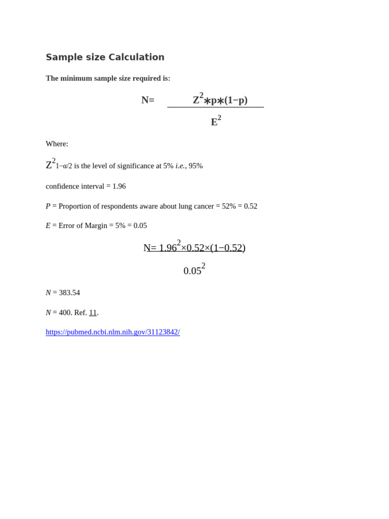 P = Proportion of respondents aware about lung cancer = 52% = 0.52