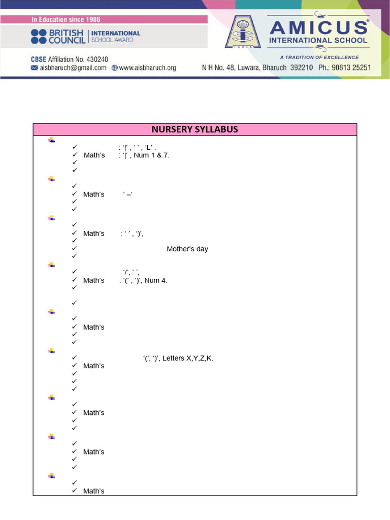 SYLLABUS FOR PRE PRIMARY, 2022-23