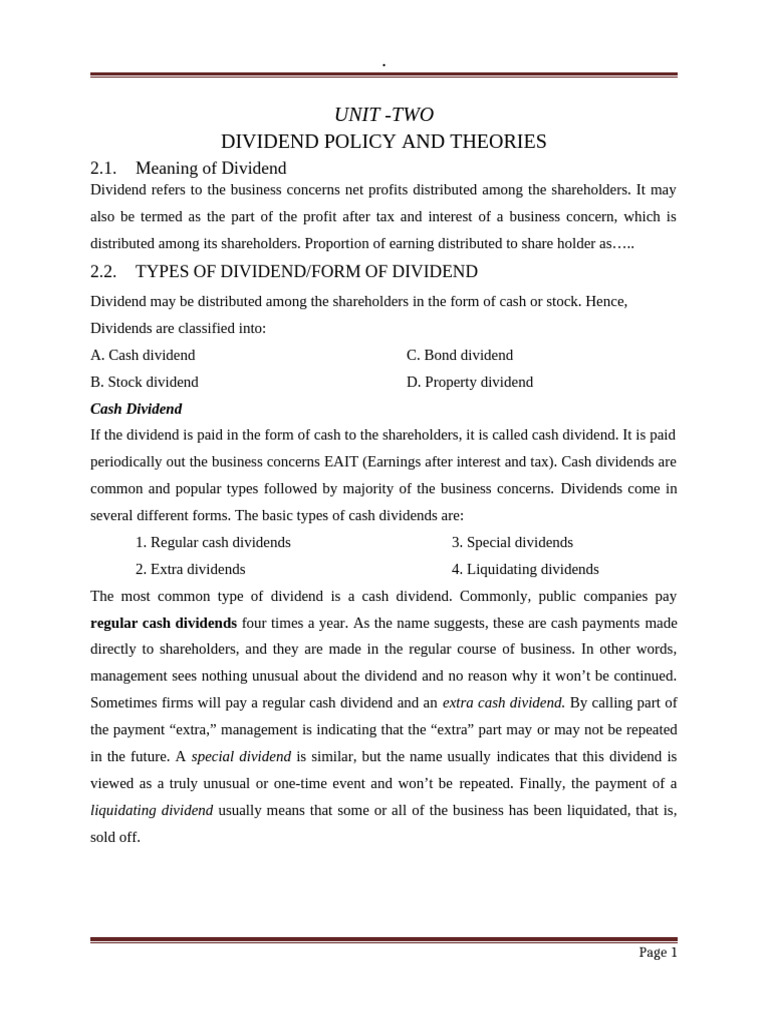 2.2. TYPES OF DIVIDEND/FORM OF DIVIDEND
