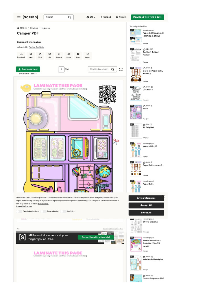 Laminate the page using transparent scotch tape or laminator (see instructions)