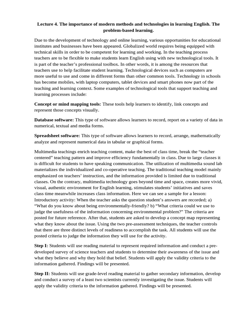 Lecture 4. The importance of modern methods and technologies in learning English.