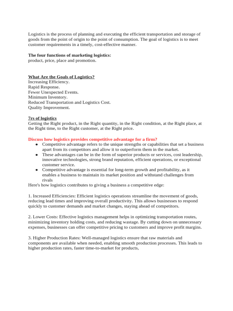 goods from the point of origin to the point of consumption. The goal of logistics is to meet