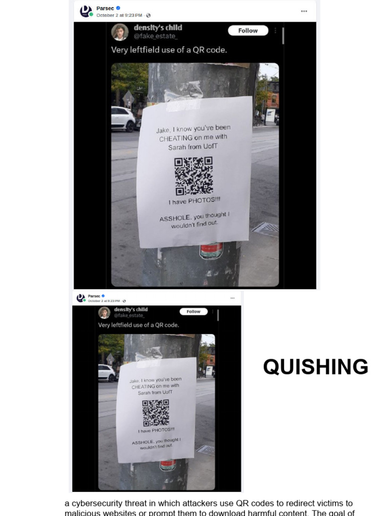 a cybersecurity threat in which attackers use QR codes to redirect victims to