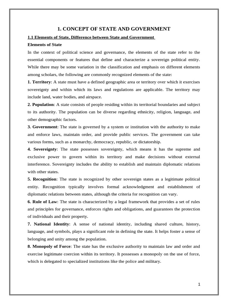 These elements are interrelated and contribute to the functioning and legitimacy of a state.