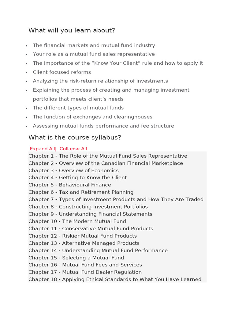 Chapter – 1 ( The Role of the Mututal Fund Sales Representative)