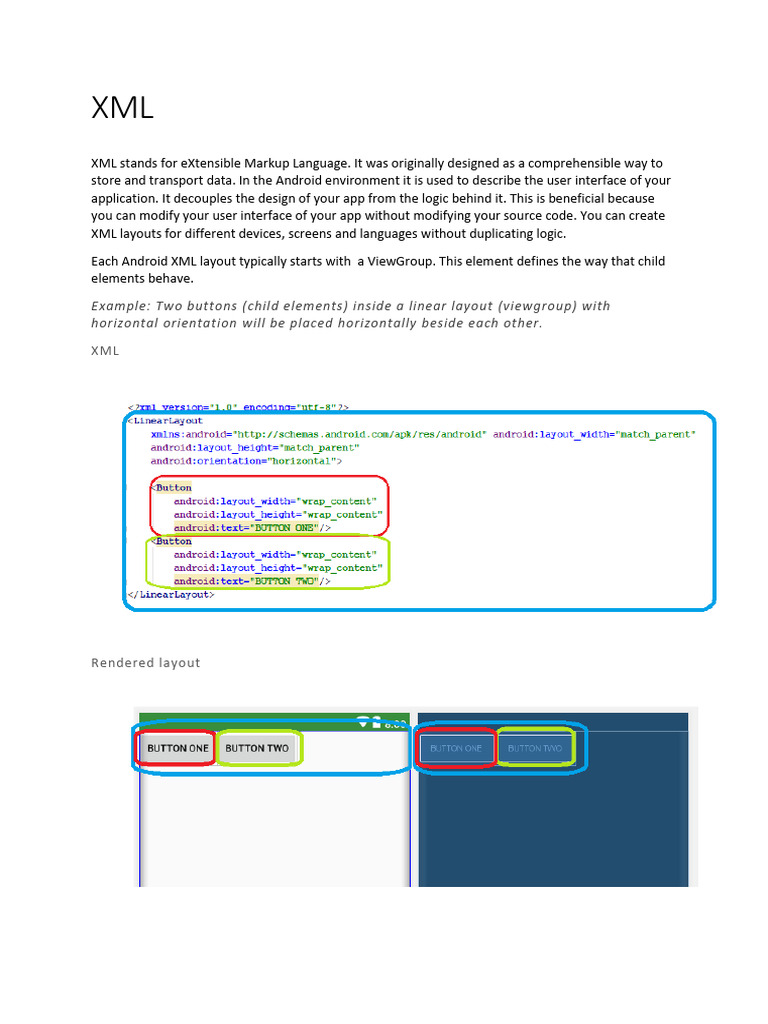 store and transport data. In the Android environment it is used to describe the user interface of your