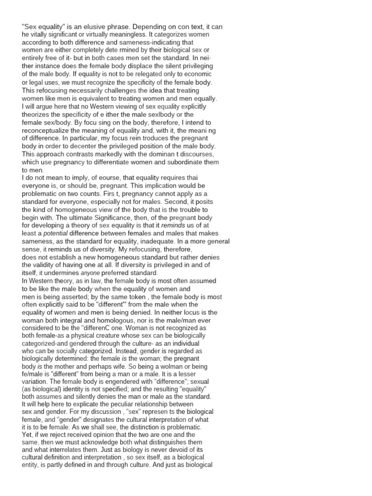 "Sex equality" is an elusive phrase.