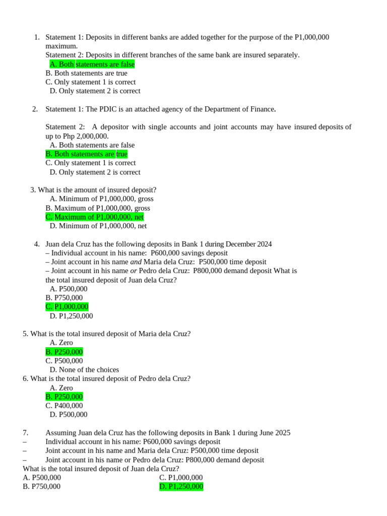 7. Assuming Juan dela Cruz has the following deposits in Bank 1 during June 2025