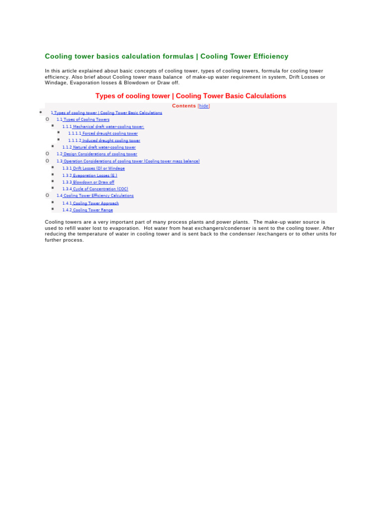 Cooling tower basics calculation formulas | Cooling Tower Efficiency