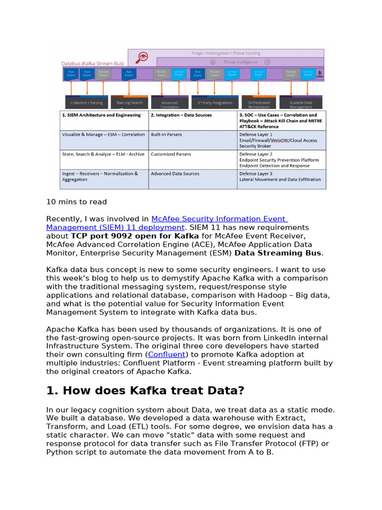 Kafka data bus architecture. SIEM's data sources on the Receivers can be