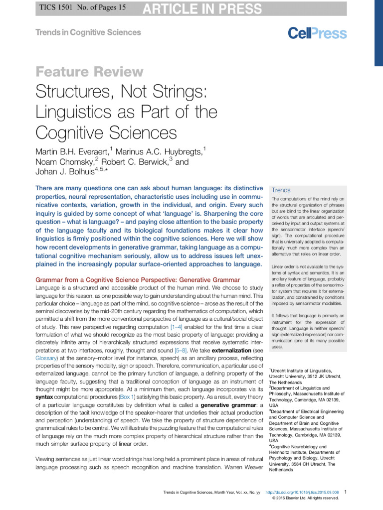 Noam Chomsky,2 Robert C. Berwick,3 and