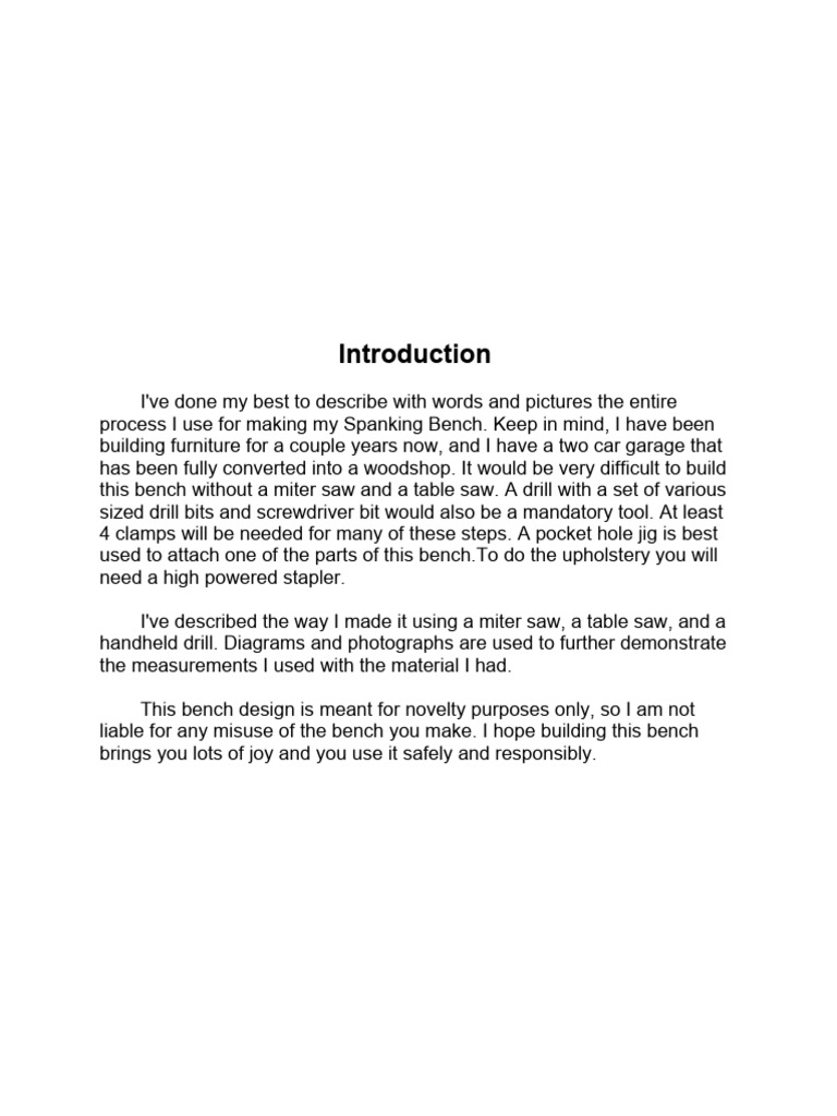 process I use for making my Spanking Bench. Keep in mind, I have been