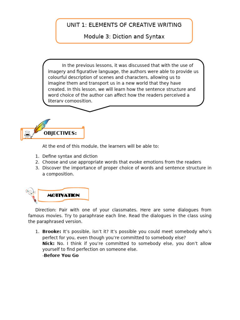 UNIT 1: ELEMENTS OF CREATIVE WRITING